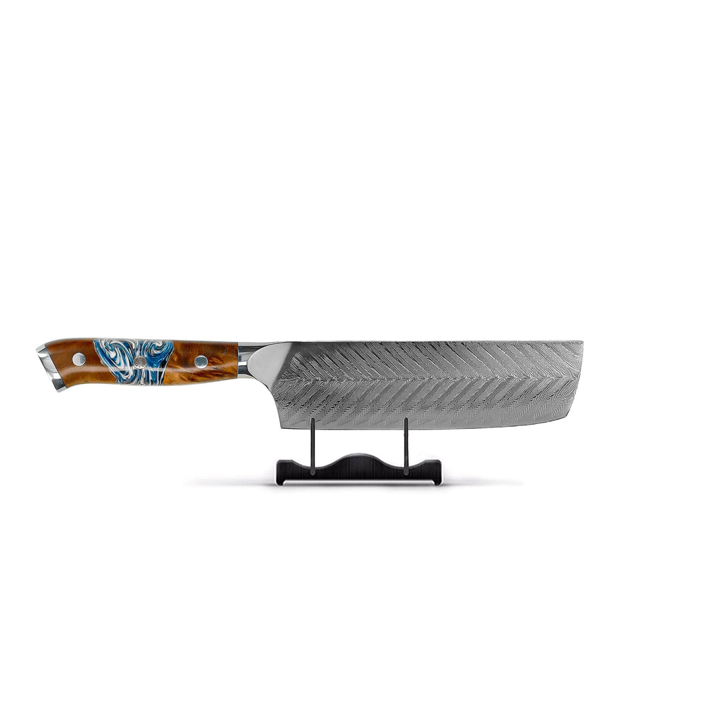 Inspired by the natural phenomenon of the sun and moon meeting, the Eclipse series offers a stunning contrast of materials and craftsmanship. The epoxy and maple handles reflect this balance. Every detail is designed to be both functional and visually striking, for the chef seeking harmony between style and performance.